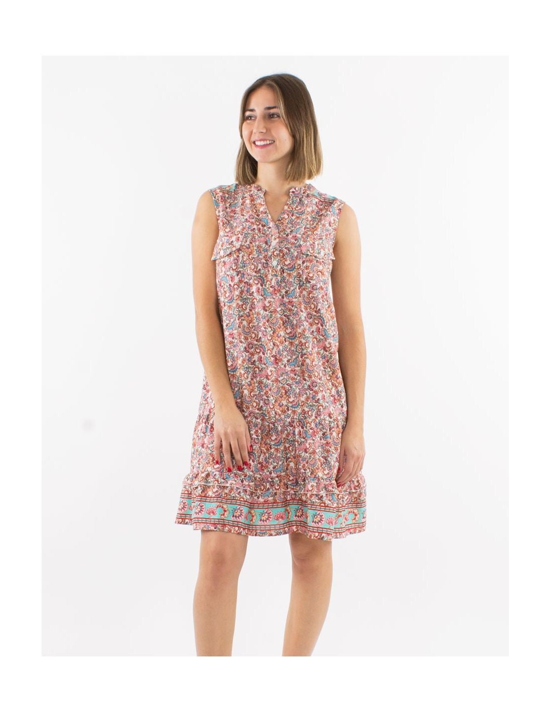 Poliéster bolsillos pecho sin mangas estampado floral