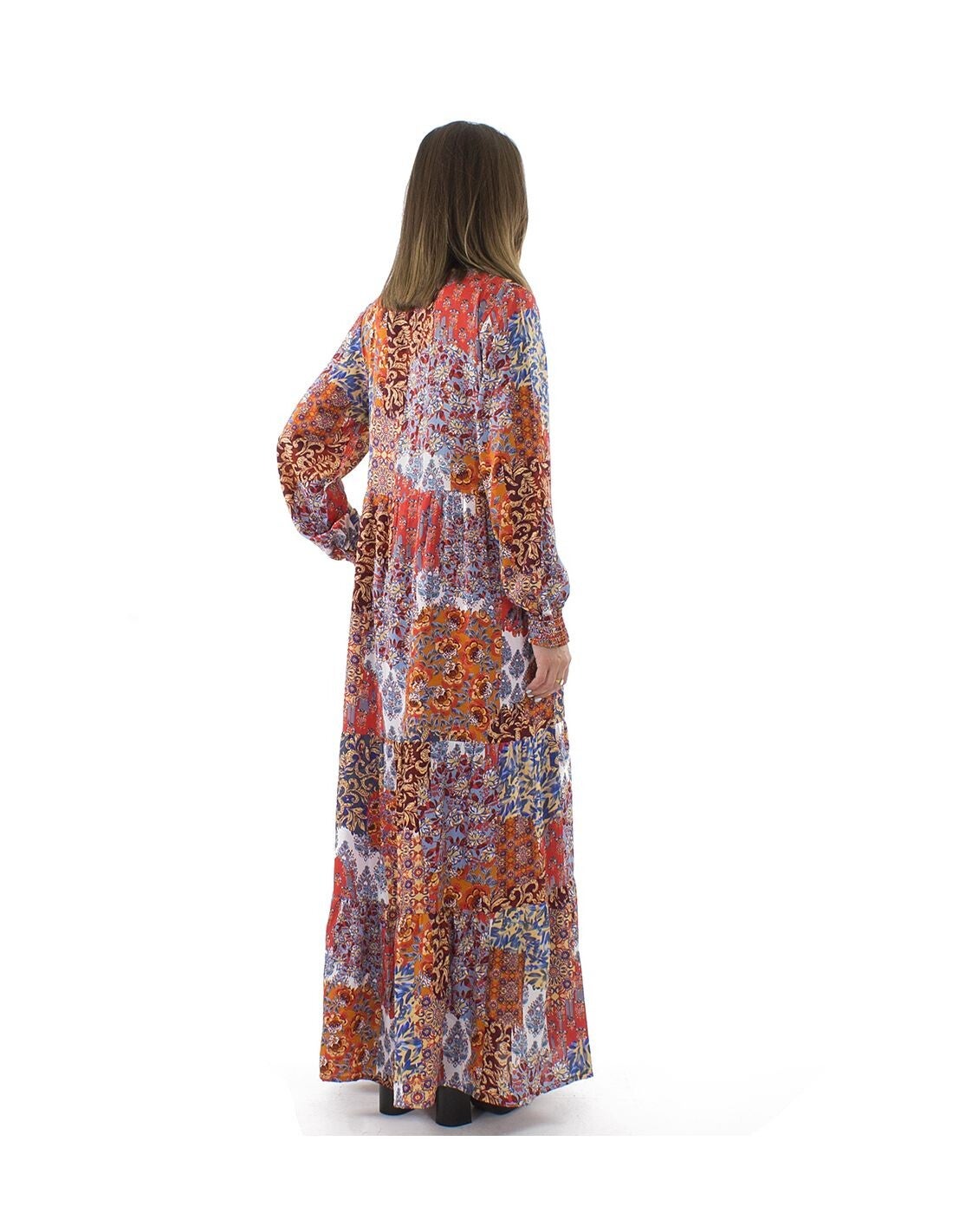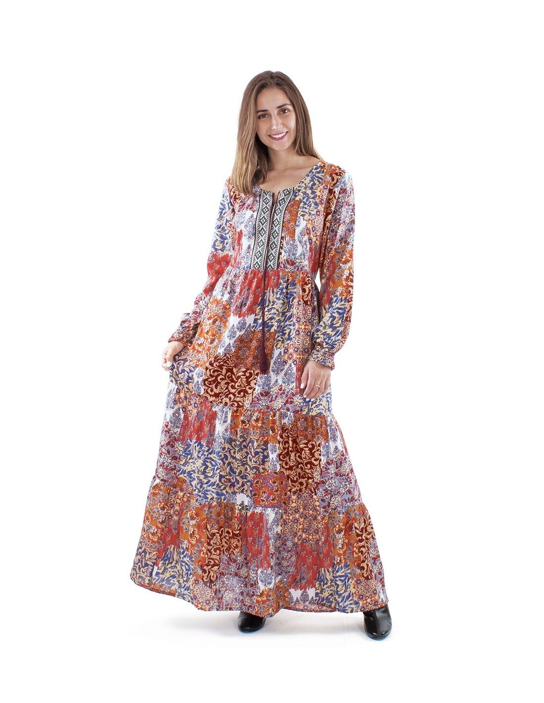 oliéster doblado cuello bordado mangas largas