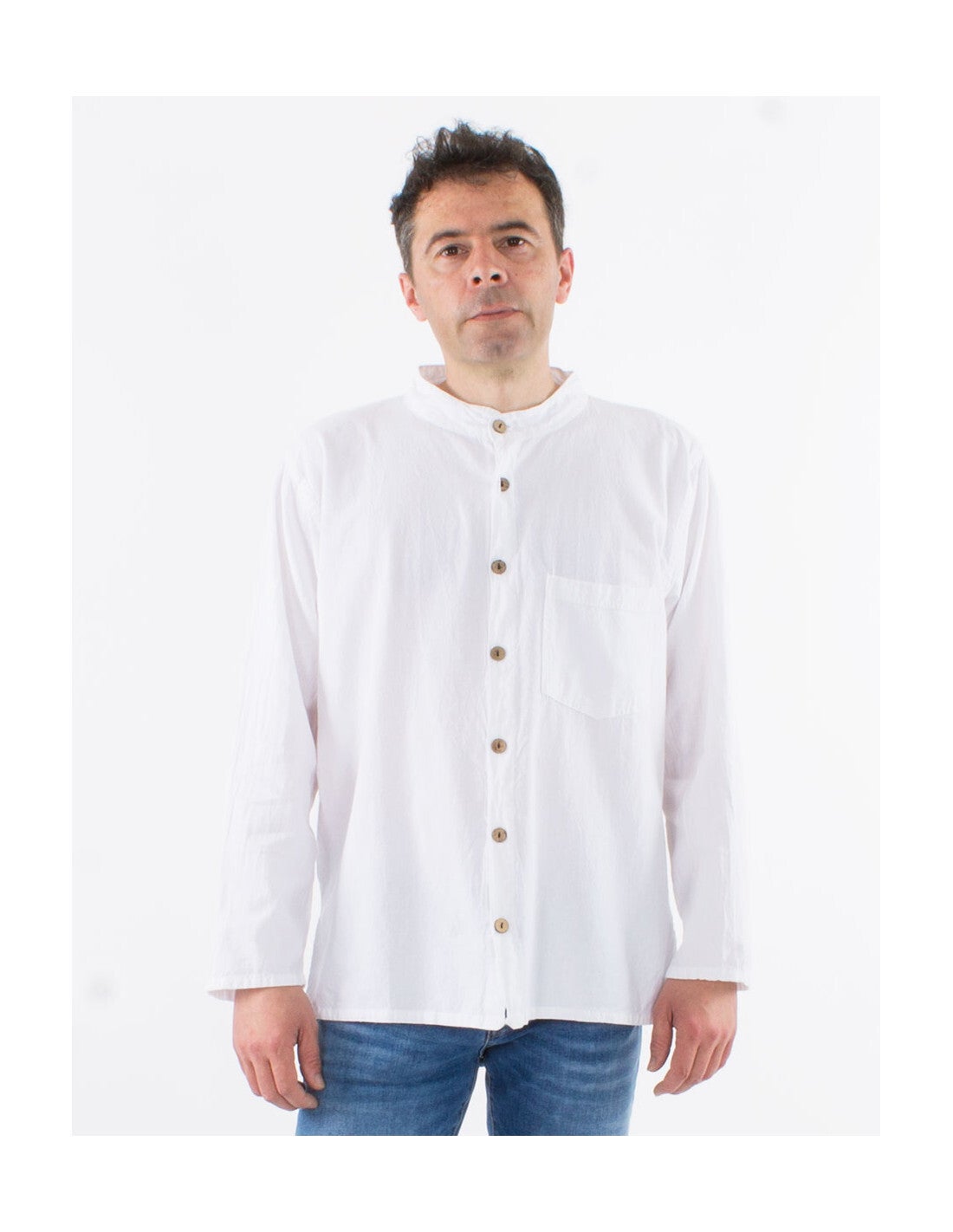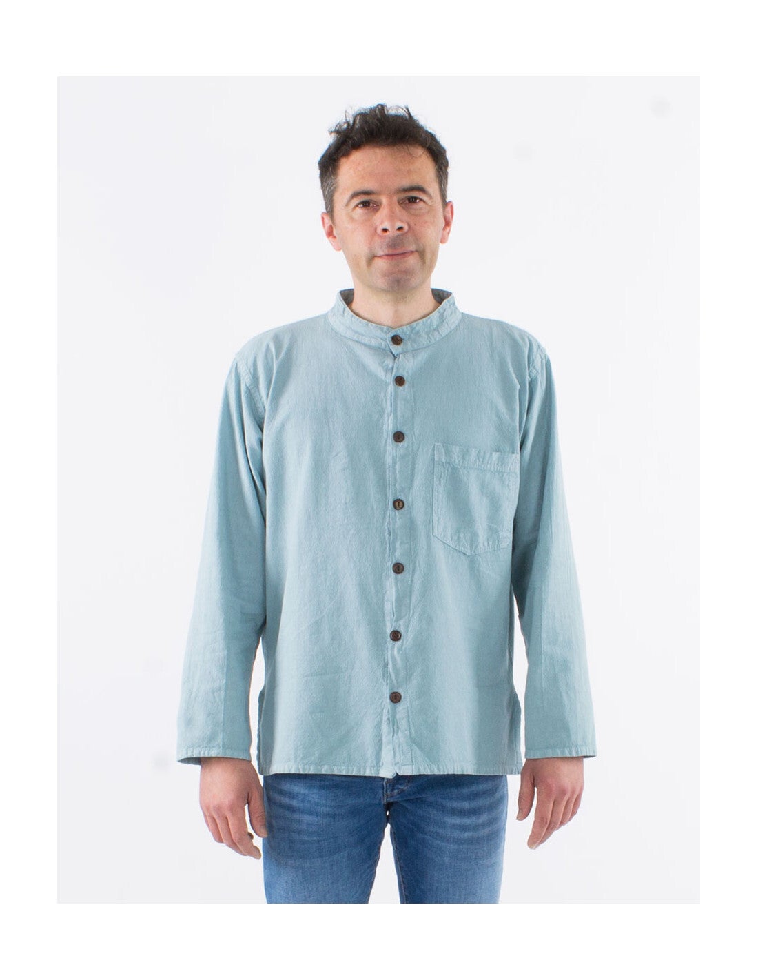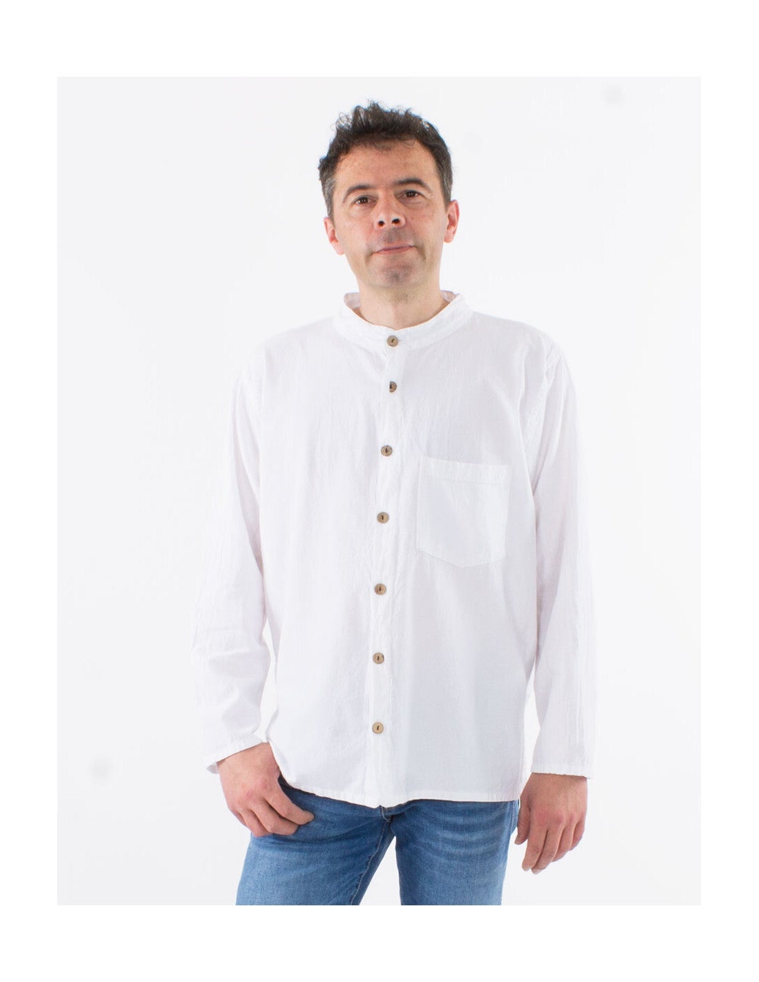 Algodón lisa mangas largas con botones sw