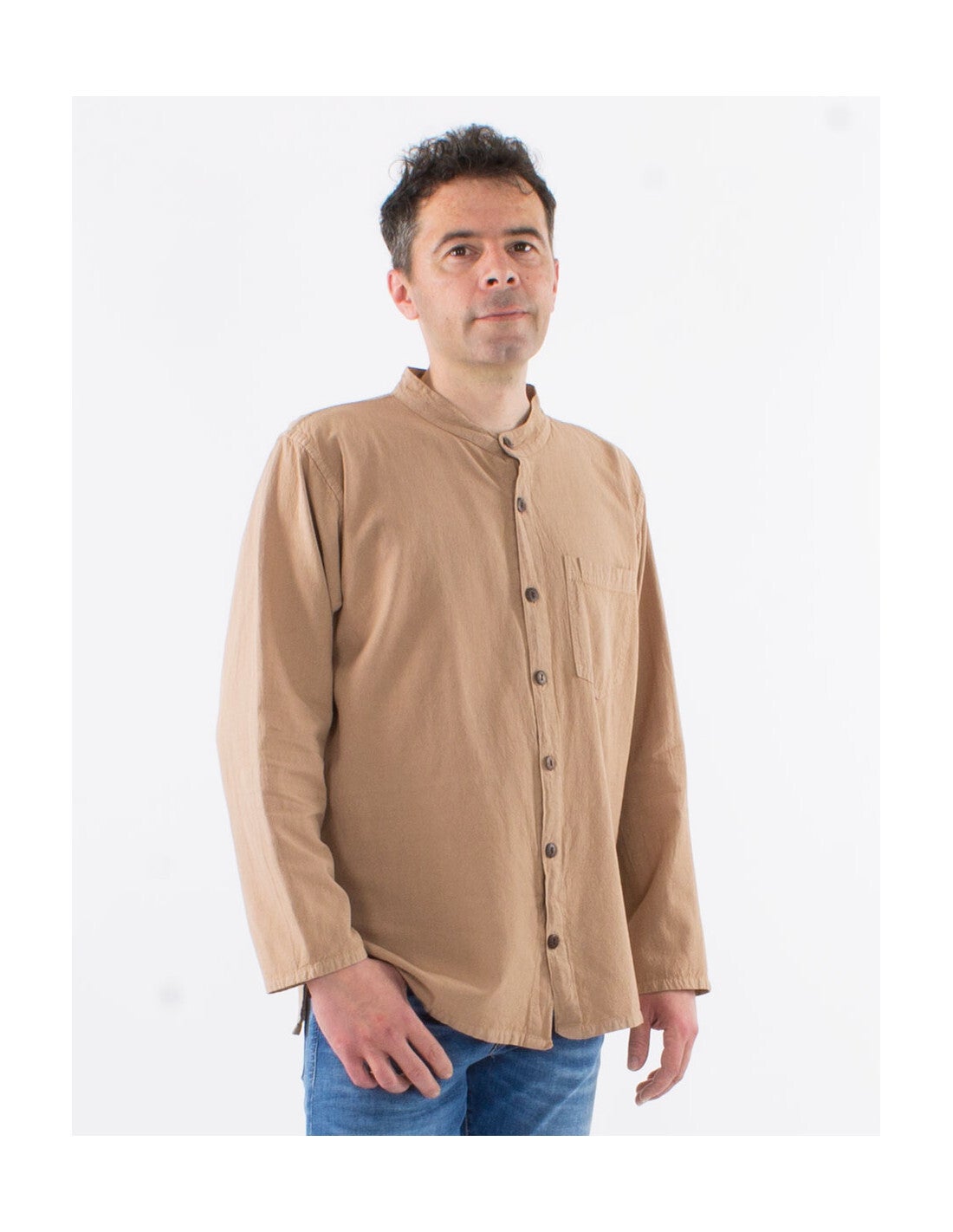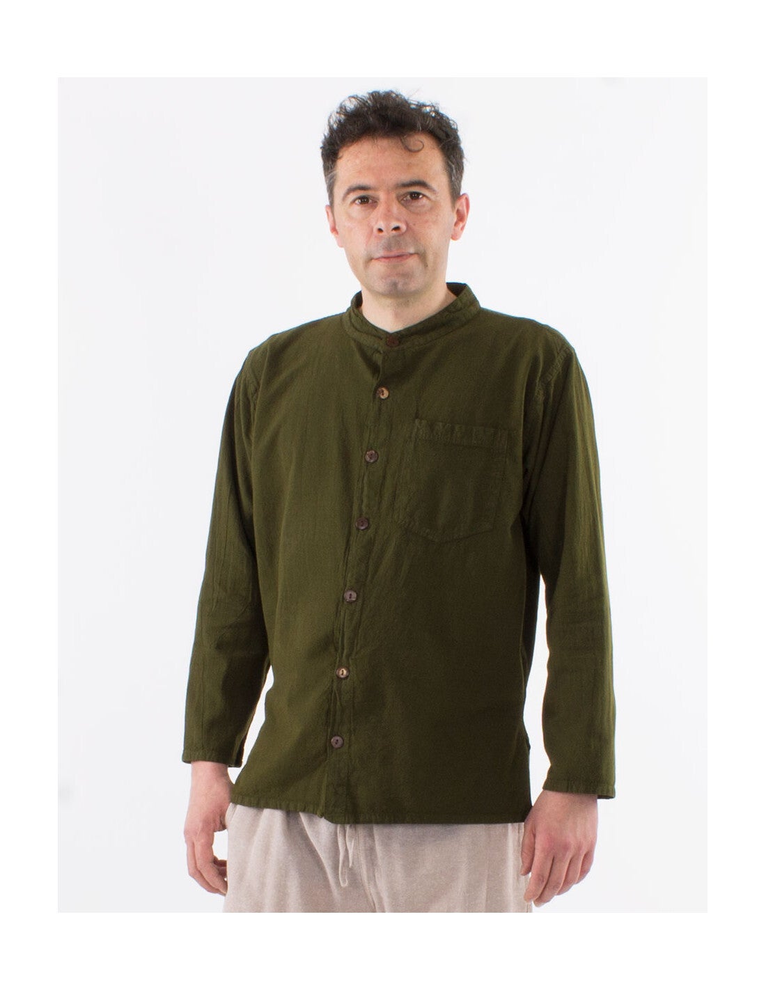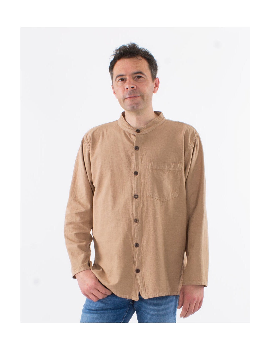 Algodón lisa mangas largas con botones sw