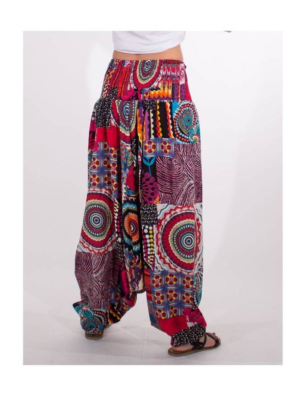 Pantalón sarouel de algodón con estampado multicolor. Cómodo, ligero y versátil, ideal para looks bohemios, casuales y días de verano.